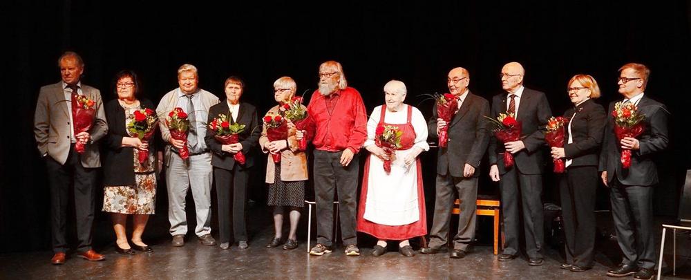 Pitkäaikaisessa toiminnassa olleita jäseniä muistettiin kukkakimpuilla ja lämminhenkinen iloinen juhla päättyi karjalaisten lauluun.